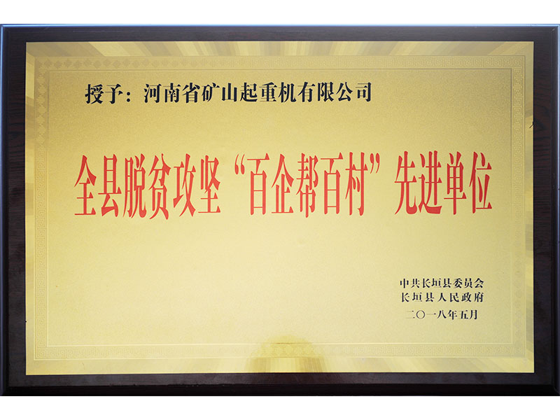 2018年5月9日下午,長垣縣召開“長垣縣脫貧攻堅第七次推進(jìn)會議”,會議表彰了在扶貧攻堅工作中做出突出貢獻(xiàn)的集體和個人,河南礦山獲得“全縣脫貧攻堅百企幫百村先進(jìn)單位”稱號。